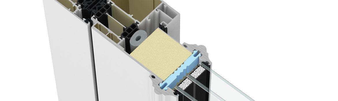 Unser Premium System mit beidseitig aufgesetzter Füllung kann einen Ud-Wert von 0,65 W/m2K erreichen.